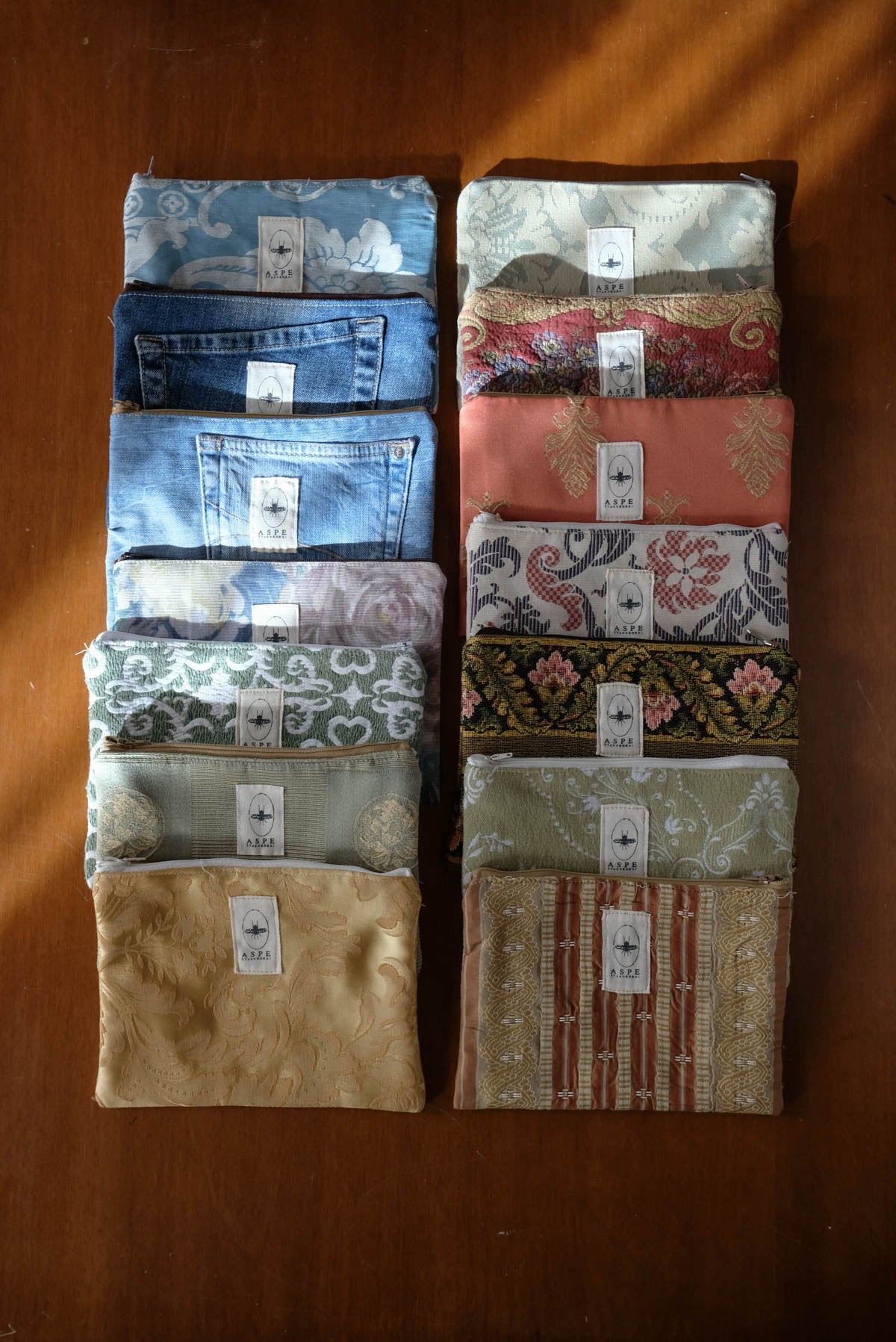 Bustina astuccio realizzata artigianalmente per Aspettaevedrai con tessuti di recupero o provenienti da fondi di magazzino. Foderata, comoda per custodire e trasportare i tuoi gioielli, prodotti beauty, penne e tutte le piccole cose che ti servono nel quotidiano. Dimensioni cm 16 x 22