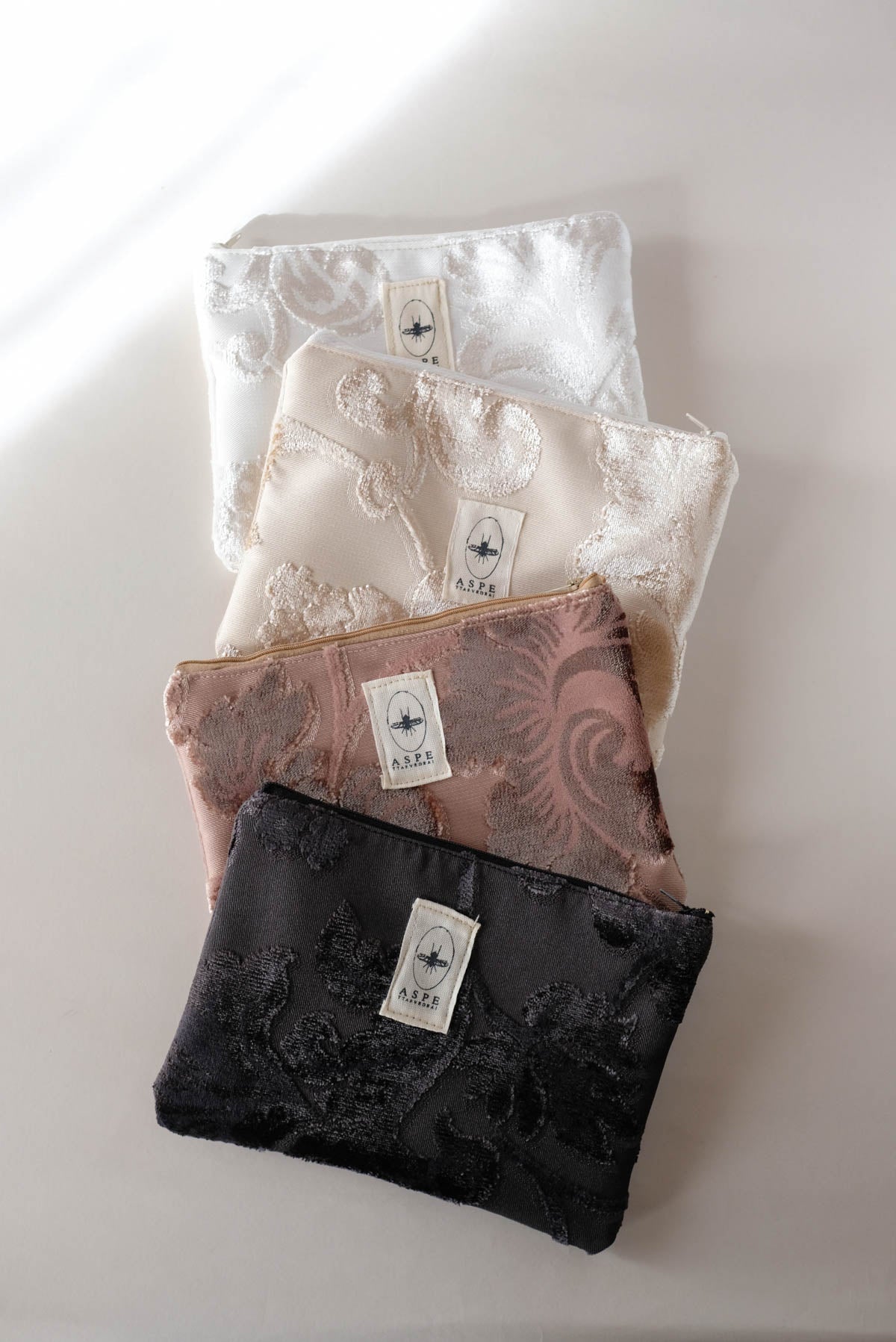 Bustina astuccio realizzata artigianalmente per Aspettaevedrai con tessuti da cmpionari di tappezzeria. Foderata, comoda per custodire e trasportare i tuoi gioielli, prodotti beauty, penne e tutte le piccole cose che ti servono nel quotidiano. Dimensioni cm 16 x 22