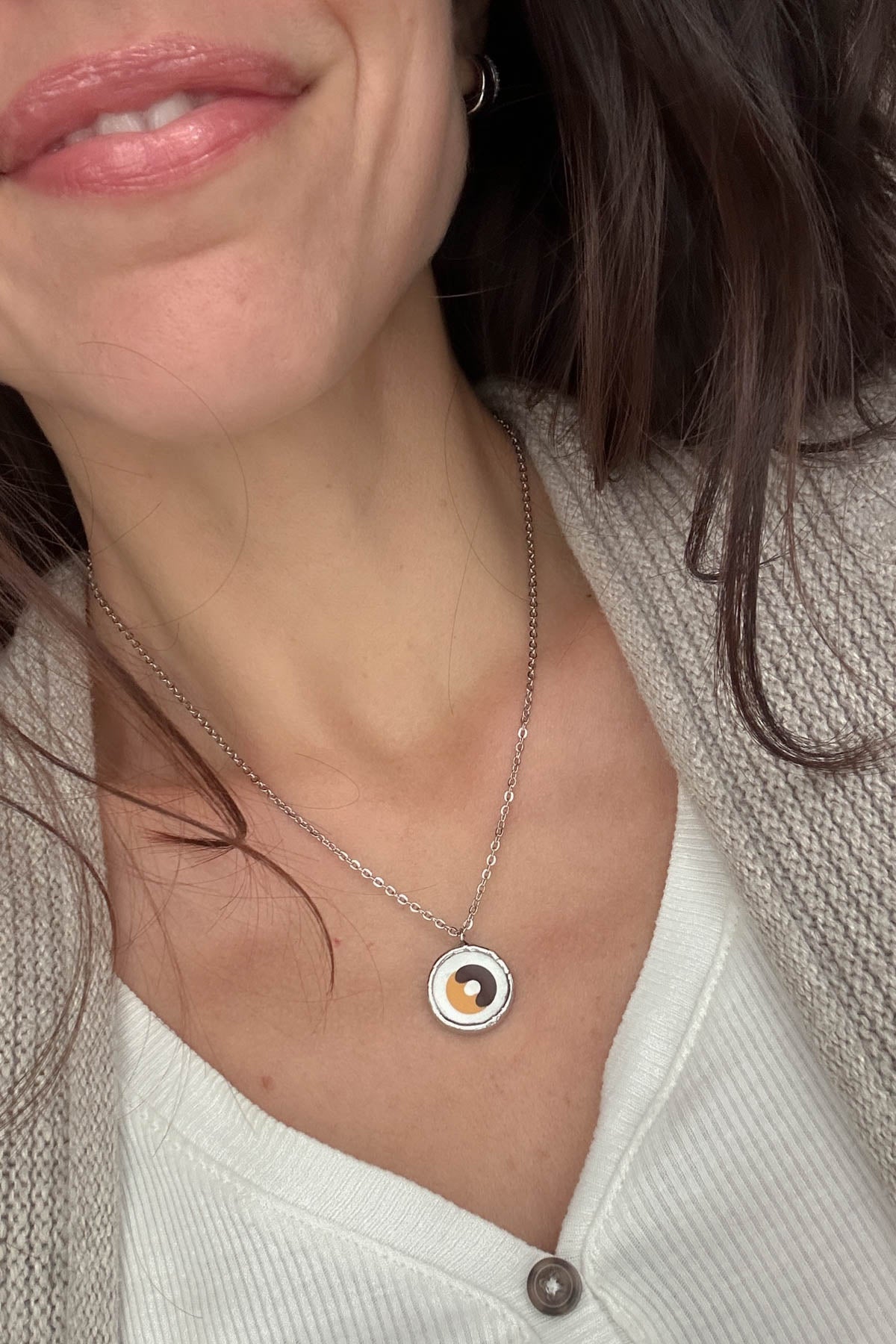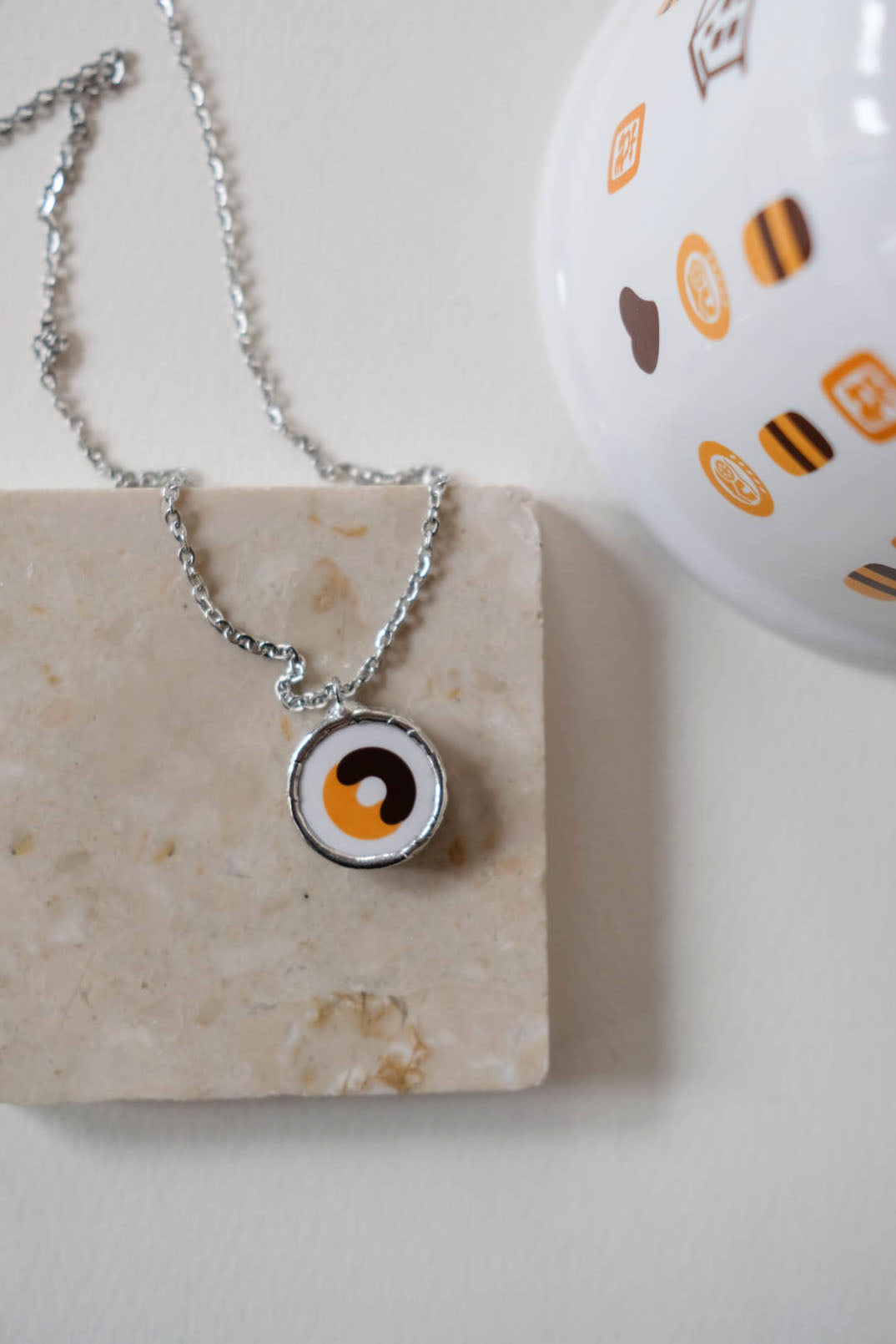 Collana con ciondolo realizzato a partire da un frammento di tazza del Mulino Bianco.