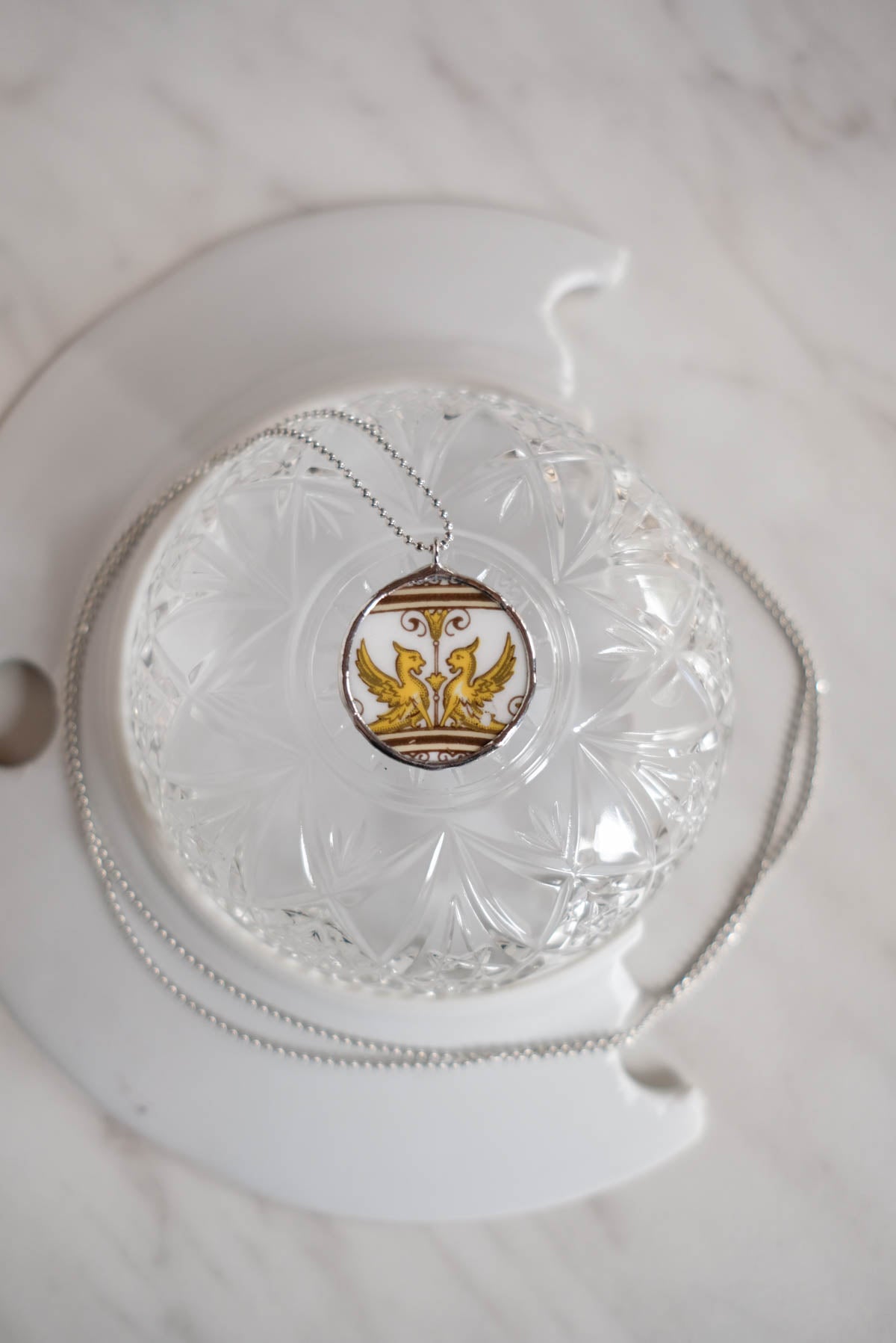 Collana con ciondolo realizzato a partire da un pezzo di piatto vintage