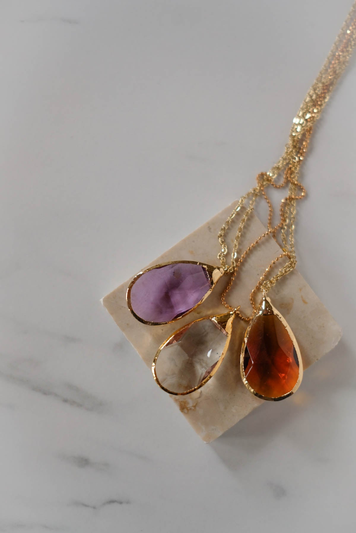 Collana realizzata a partire da goccia di lampadario in vetro. cm 4 x 2,5.