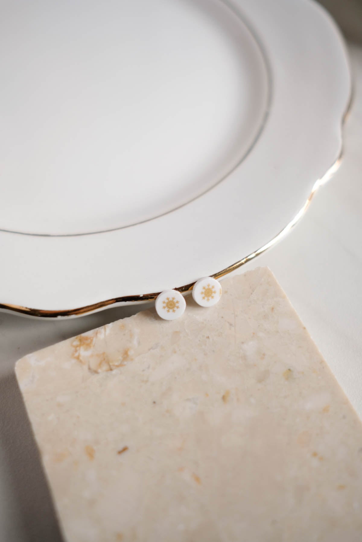 Orecchini realizzati a partire da frammenti di piatti rotti vintage.
